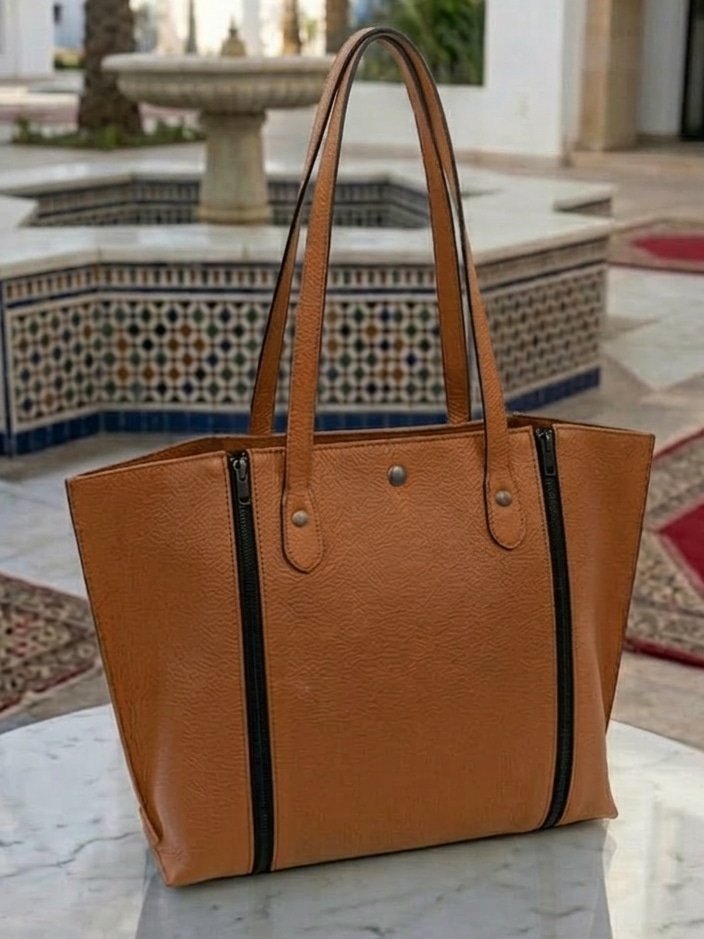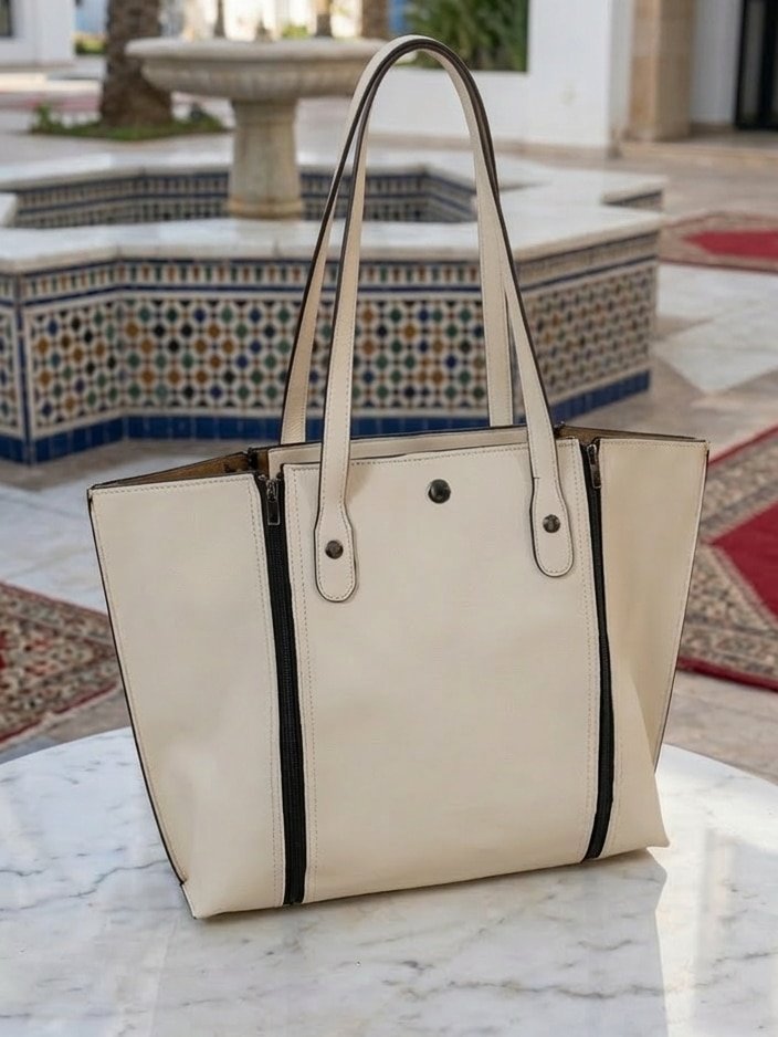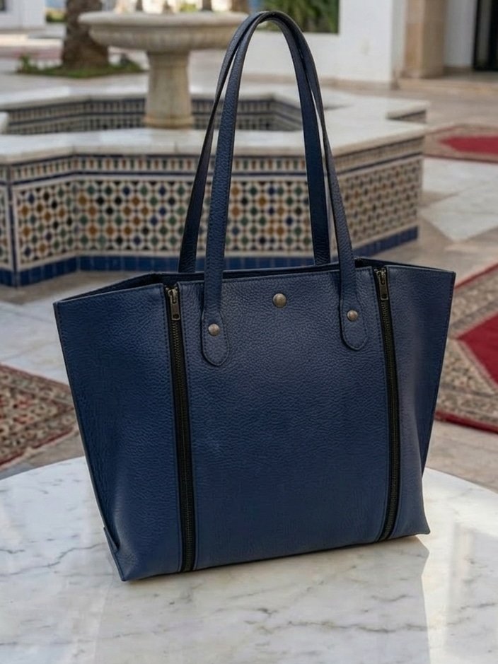 حقيبة جلدية فخمة بألوان كتحمق: الأسود الكلاسيكي، البيج الأنيق، المارون الدافئ، والبلو مارين الساحر. زيدي عليها مساحة تخزين واسعة لكل احتياجاتك.”
